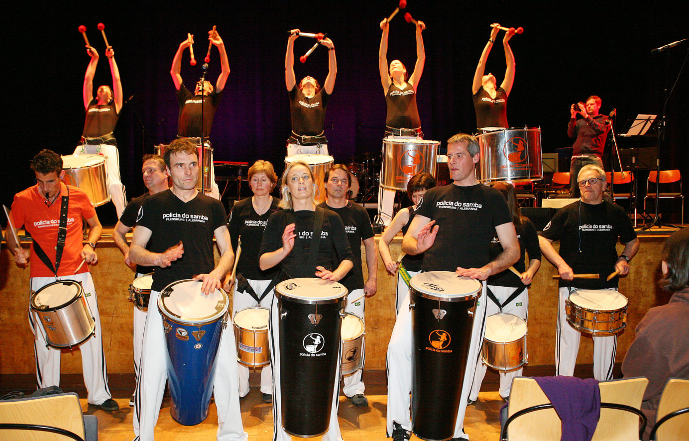 | Durchdringende, energiegeladene Rhythmen auf brasi-lianischen Instrumenten sorgen auf dem Superding für Aufsehen und good vibrations. Traditionelle brasi-lianischen Rhythmen, eigene Arrangements von Bandleader Tim Kliem, sowie eine beeindruckende Show, halten Bauch und Beine in Atem. |