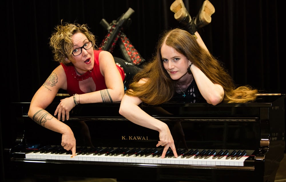 | Kraftvoll elegant und feinsinnig – so präsentiert sich das Duo StereHoeCaVe (Catharina Voigt und Vera Roedder) auf zwei Pianos mit zweistimmigem Gesang. Auf diese besondere Art interpretieren sie ihr Pro-gramm, das aus Klassikern, Rock- und Popballaden, Soul und südeuropäischen Coversongs besteht. |